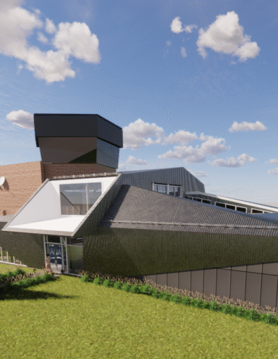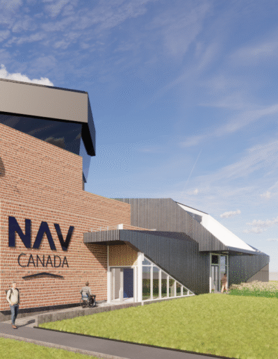The project expands an existing air traffic control tower with a striking addition that houses large-scale operational workspaces while redefining the airport’s architectural identity. Two cantilevered “wings” extend from the original structure, bridging old and new, and forming a cohesive, functional whole. Above, a second-floor “cockpit” commands expansive, unobstructed views of the runway, optimizing visibility for next-generation digital coordination.
