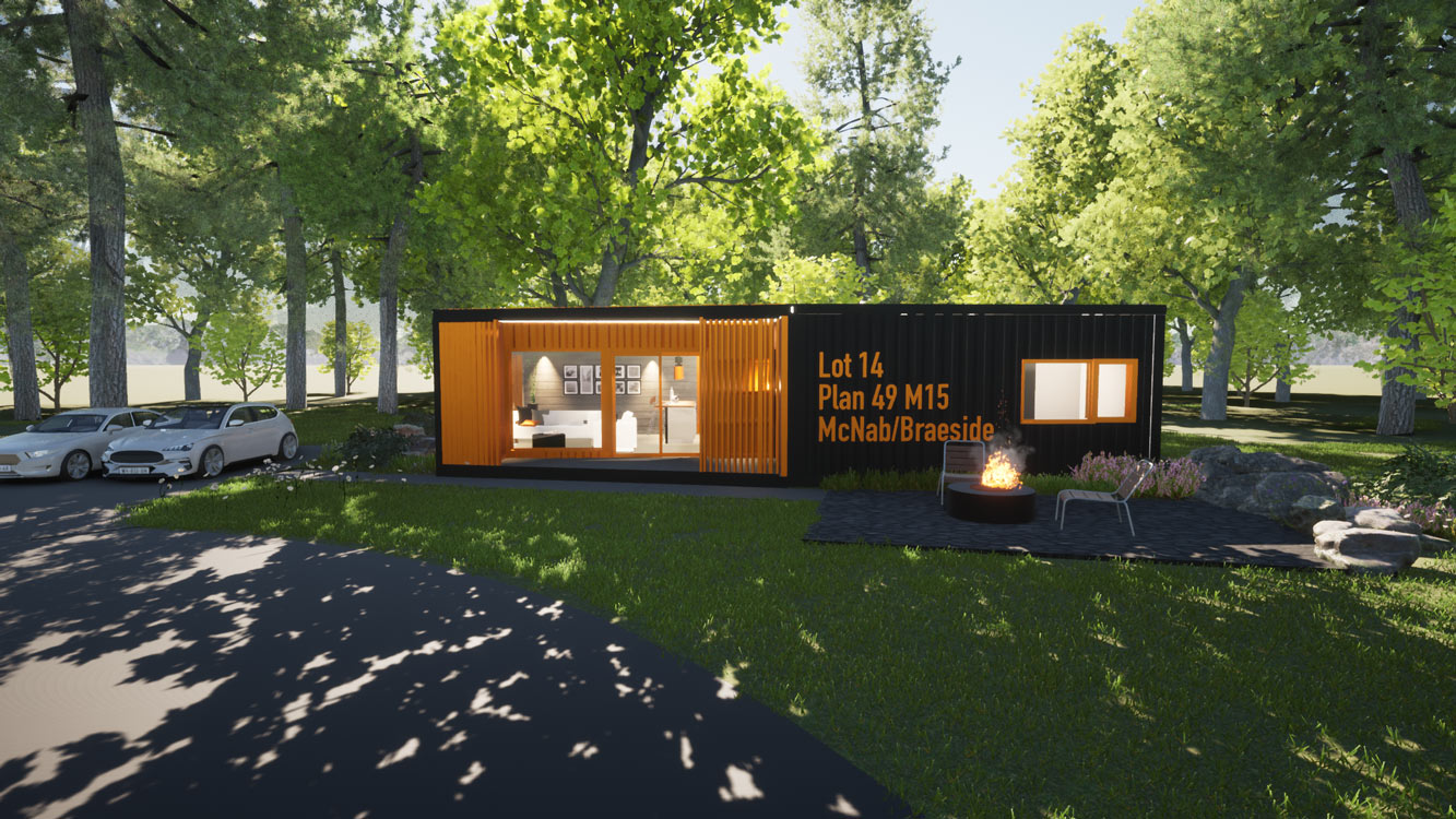 The #Kontainer_Kottage is located in a forested lot along the Ottawa River. Created using three shipping containers, 3-bedroom retreat expresses the industrial characteristics of the units while also creating a welcoming home for the residents.