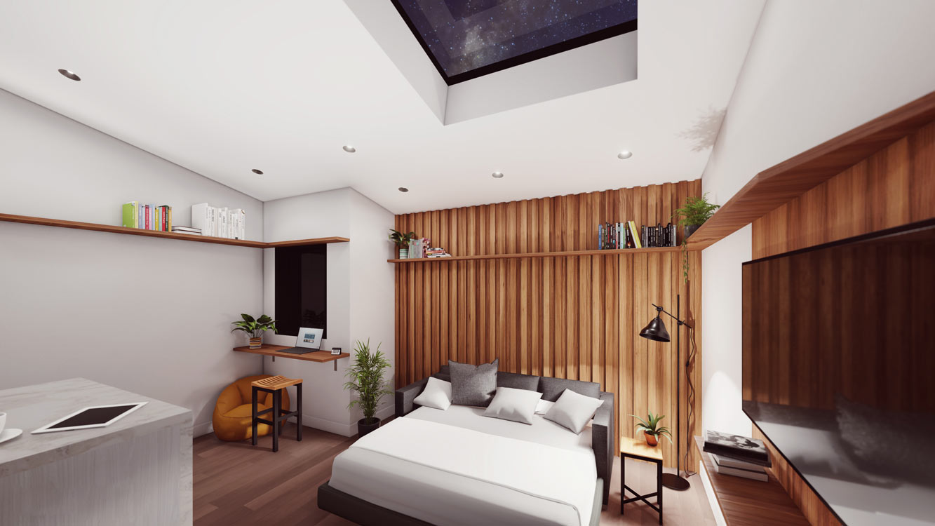 The modular construction enables the structure to be assembled within 1-week and enables the interior to be completed within a weather-tight envelope. Colorful accents draw inspiration from the changing leaves during the fall rhapsody.