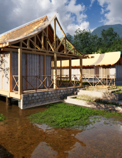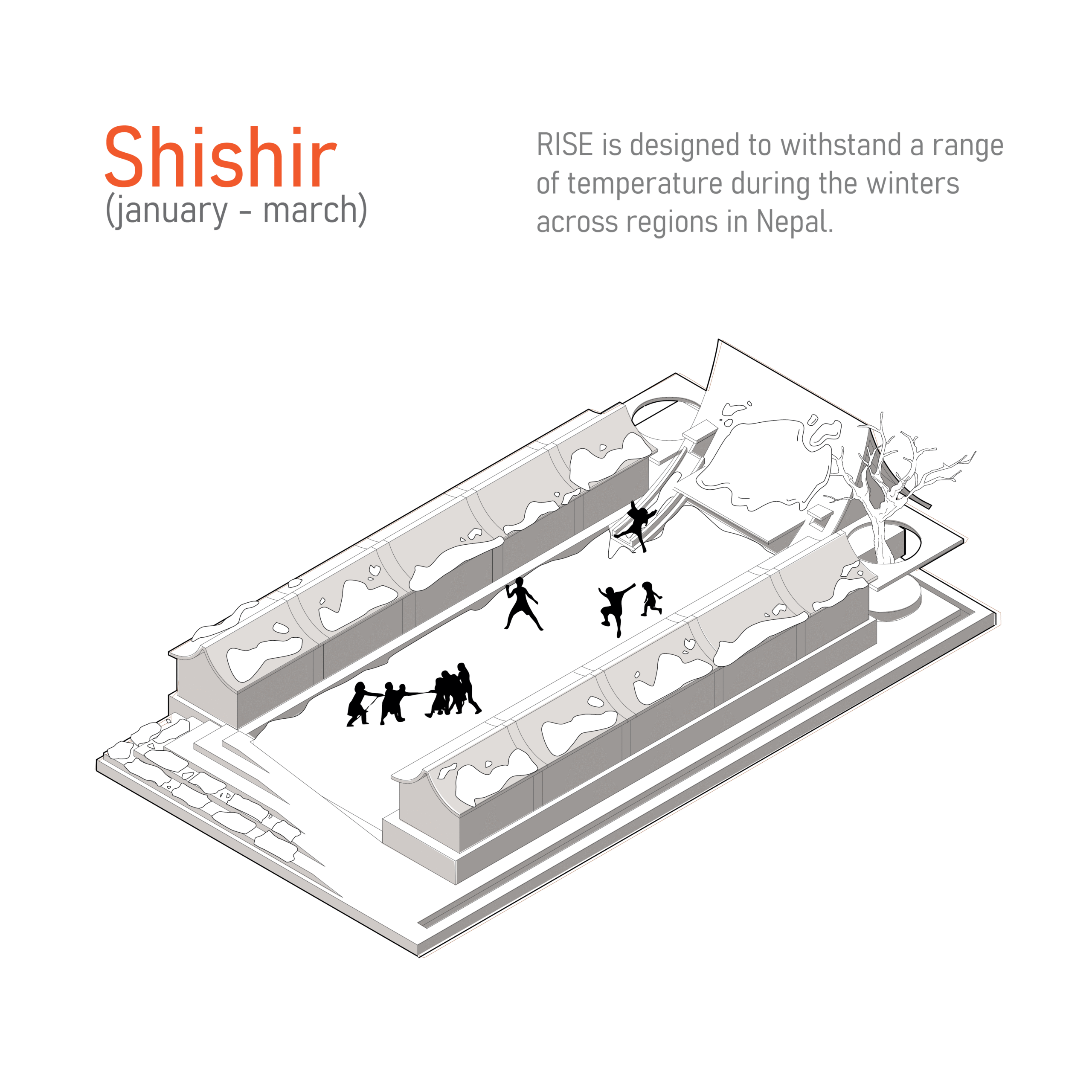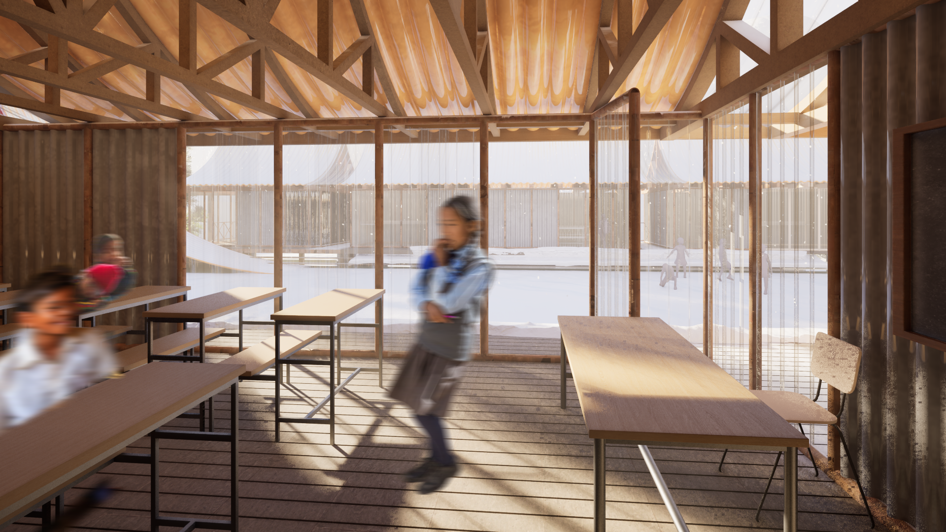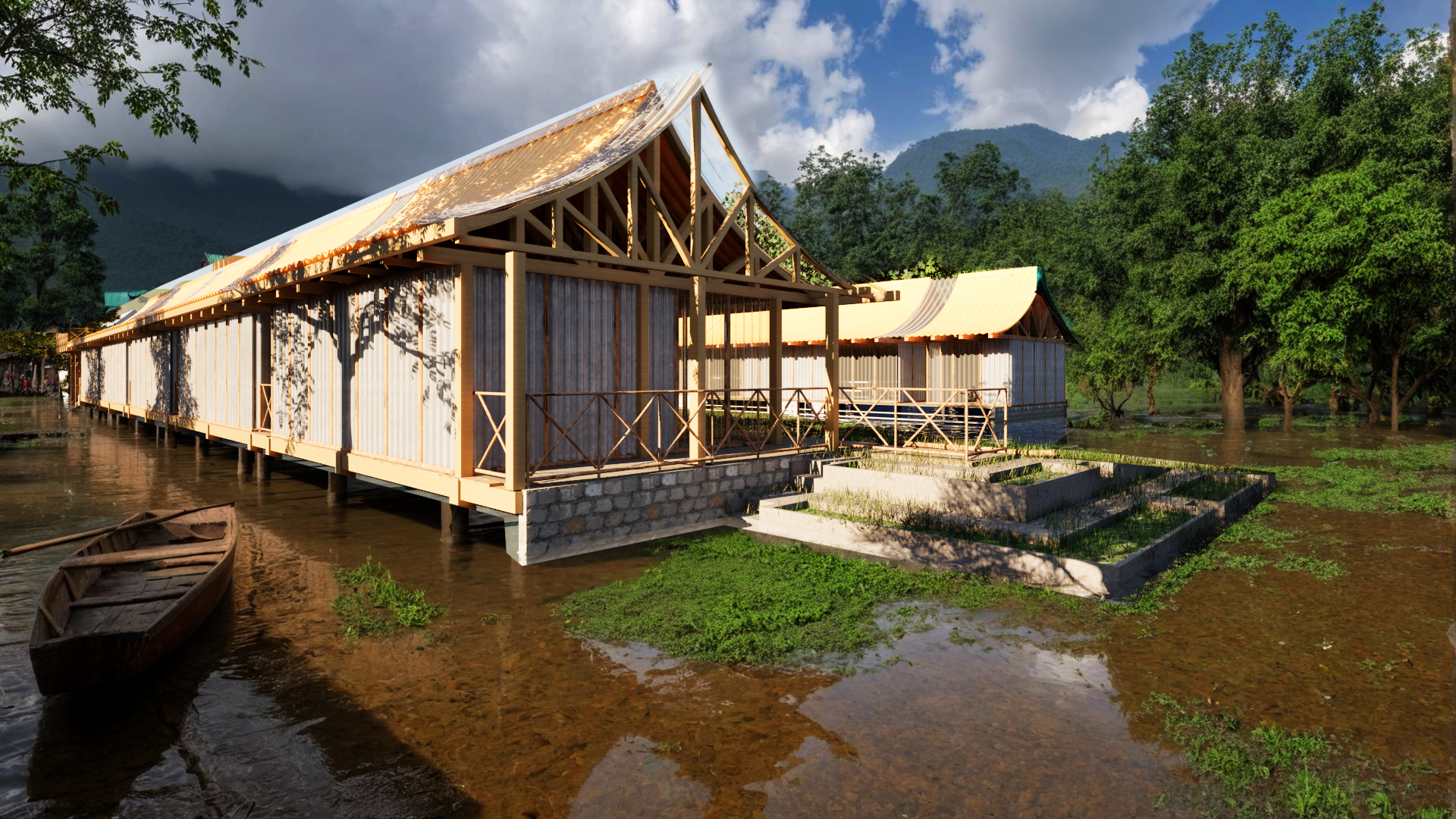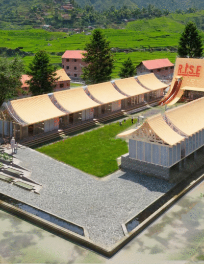 RISE is a modular school prototype designed for Nepal’s flood-prone and seismically active landscapes. Inspired by the rising Himalayan sun over the mountains, RISE is more than a building—it is a system of learning, safety, and renewal. Rooted in local culture and driven by resilience, it offers a replicable solution for vulnerable regions.